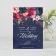 Navy blue burgundy flowers vintage roses wedding invitation template instant download with QR RSVP code, just add your url address and zazzle will generate your code