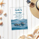 This elegant navy wedding invitation is perfect for a coastal wedding. The design features a beautiful under-the-sea view of playful dolphins with sleek navy blue calligraphy on a clear acrylic background.