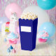 Navy blue popcorn boxes with a blank white space to write any name or message.