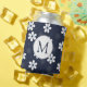 Pretty navy blue and white modern floral pattern on monogrammed can cooler.