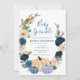 Navy Blue and White Pumpkin Floral Fall Baby Sprinkle Invitation