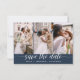 QR Code - Modern and Elegant Landscape Horizontal Three (3) Photo Save the Date Wedding with hand lettered script typography. The save the date invitation magnet includes script typography and chic and simple design that you can add your customised engagement photograph picture to.