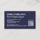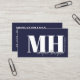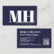 Navy Blue Professional Simple Modern Monogram Business Card. You can change it to any business you want—makeup artist, lash specialist, hair stylist, or even something like marketing, consulting, and more! Featuring a navy blue background on both sides with white fonts throughout, aside from a grey font on the front for the title. The typography is a mix of classic and bold styles paired with an elegant script font for the details. The back includes space for a white QR code so customers can quickly connect to your website, with white social media icons placed above it—you can remove any you don’t want. A trendy and chic look that is still professional and elegant. You can change out all of the colours to make it the way you want it. The side name on the front should work with most initials, but if not, you may want to play around with the spacing in the full editor.