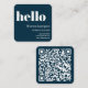 Navy Blue | QR Code Social Media Hello Square Business Card
