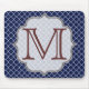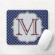 Navy Blue Quarterfoil Lattice Quarter Foil Monogram Initial Personalised Custom Fabric Pattern Mouse Pad