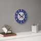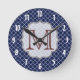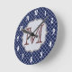 Navy Blue Quarterfoil Lattice Quarter Foil Monogram Initial Personalised Custom Fabric Pattern Wall Clock