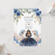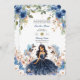 Navy Blue Quinceanera Dress Floral Butterflies Invitation