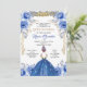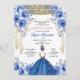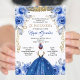 Navy Quinceanera Invitation, Blue Flowers, Crown Mis Quince Anos
