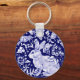 Navy Blue Rabbit Bunny Bird Floral Dedham Delft Key Ring