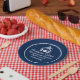 This professional realtor paper plate is custom made with your real estate company name under the modern white cursive script for an open house. This chic navy blue realty party decor features a house logo image for home builder or realty agent company marketing.