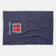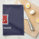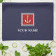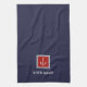 Navy blue red anchor personalised kitchen towels. Red and white square anchor with your name beneath on a navy blue background.