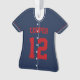 Navy Blue & Red Baseball Jersey Player Stats Ornament