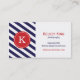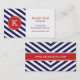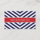 Navy Blue & Red Chevron Stripes Monogram Business Card