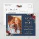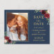 Navy Blue Red Floral Photo Save the Date Postcard