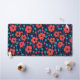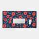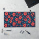 Navy Blue Red Poppy Floral Print Pattern Desk Mat