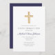 Navy Blue Religious Cross Boy Confirmation Invitation