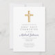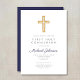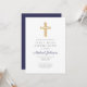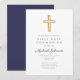Personalized Navy Blue Cross Religious Boy First Communion Invitation.