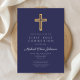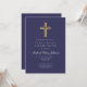 Navy Blue Religious Cross Boy First Communion Invitation