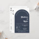 Navy Blue Retro Arch Photo QR Code RSVP Groovy Invitation