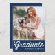 Invite guests to your event with this customisable photo graduation invitation. It features a retro bold script and classic typography. Personalise by adding your details. This navy blue graduation invitation is also available in other cardstock and colours.