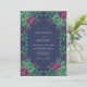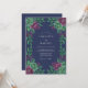 A deep navy blue backdrop sets a moody tone for this design, which features a lush arrangement of watercolor roses in shades of plum and emerald green. Intricate foliage and verdant leaves accent the design, creating a rich and sophisticated botanical look. Ideal for an elegant winter evening, the artwork combines classic floral motifs with a bold, dark palette.