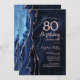 Navy Blue Rose Gold Agate 80th Birthday Invitation