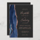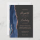Navy Blue Rose Gold Agate Dark QR Code Wedding Invitation