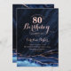Navy Blue Rose Gold Agate Marble 80th Birthday Invitation