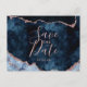 Navy Blue Rose Gold Agate Marble Save the Date Announcement Postcard