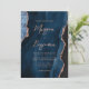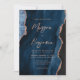 Navy Blue Rose Gold Agate Script QR Code Wedding Invitation
