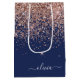 Navy Blue Rose Gold Blush Pink Glitter Monogram Medium Gift Bag