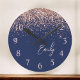 Navy Blue Rose Gold Blush Pink Glitter Monogram Round Clock