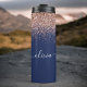 Navy Blue Rose Gold Blush Pink Glitter Monogram Thermal Tumbler
