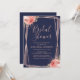 Navy Blue Rose Gold Floral Bridal Shower Invitation