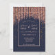 Navy Blue Rose Gold Glitter Blush Confetti Wedding Invitation