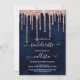 Navy Blue Rose Gold Glitter Drips Bachelorette Invitation