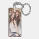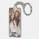 Navy Blue Rose Gold Glitter Drips Monogram Photo Key Ring