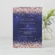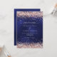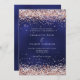 A navy blue background, the blue colour is uneven. Decorated with rose gold faux glitter. Personalise and add your names and party details.