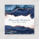 Navy Blue Rose Gold Marble Agate Personalized Square Business Card