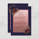 This enclosure card complements your navy blue and rose gold wedding invitation suite beautifully. Designed for including important details such as reception information, travel, or accommodations, it features elegant rose gold script framed by romantic burgundy florals. The luxurious navy background adds depth and sophistication, making it perfect for formal, or evening weddings with a refined touch.