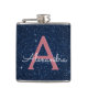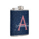 Navy Blue & Rose Gold Sparkle Monogram Initial Hip Flask