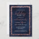 The elegant, glamourous, and modern holiday Christmas party invitation is perfect for the contemporary and stylish event. It features a faux printed pink rose gold sparkly glitter sprinkled confetti border on top of an artsy navy blue watercolor background. The back displays the same glitter but sprinkled across the whole page with the watercolor background. This chic, luxury, and unique design will be a hit with all of your guests!