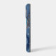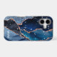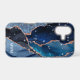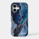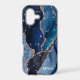 Protect your phone in style with this chic design featuring your monogram and colourful shades of blue agate with metallic rose gold foil veins and sparkly stars.