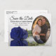 Navy Blue Rose Oval Photo Wedding Save The Date Announcement Postcard