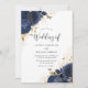 Navy Blue Roses & Gold Butterflies Wedding Invitation