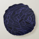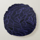 This round pillow has a nature-inspired elegance with a modern abstract twist. The colours are deep navy blue, indigo, and subtle hints of violet accents. It features an intricate overlapping leaf pattern outlined with luminous thread-like detailing, creating a textured and dynamic appearance. The organic leaf shapes paired with the rich midnight tones give it a sophisticated and calming aesthetic. It is perfect for homeowners, interior designers, or anyone looking to add a touch of refined nature-inspired elegance to their living room, bedroom, or office space. Ideal for modern, bohemian, and contemporary interiors.