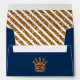 Elegant envelope featuring a beautiful faux gold glitter stripes pattern on the inside and navy blue colour with gold crown on the outside.