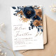 Navy Blue Rust Watercolor Floral Elegant Wedding Invitation