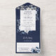 Navy Blue Rustic Boho String Lights Floral Wedding All In One Invitation