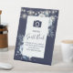 Navy Blue Rustic Floral Photo Guest Book Wedding Pedestal Sign